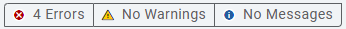 - Select theErrors,Warnings, andMessagesbuttons to filter the display to show those message types. Each button indicates the message count for that type.