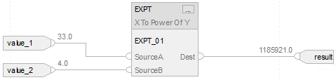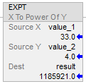 Source A | SINT INT DINT REAL | SINT INT DINT LINT USINT UINT UDINT ULINT REAL LREAL | immediate tag | value to exponentiate |