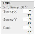 EnableIn is true | Dest = value of Source X to the power of Source Y. If overflow occurs Clear EnableOut to false. else Set EnableOut to true. |