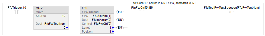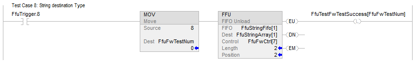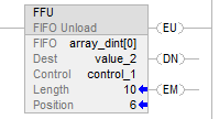 .EU | BOOL | The enable unload bit indicates the FFU instruction is enabled. The .EU bit is set to prevent a false unload when the prescan begins. |