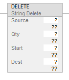 tag | The number of characters to delete | The Start plus the Quantity must be less than or equal to the length of the Source plus 1. |