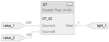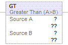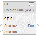When enabled, the Greater Than (GT) instruction and the operator > tests whether Source A is greater than Source B.