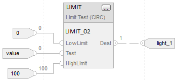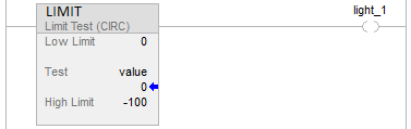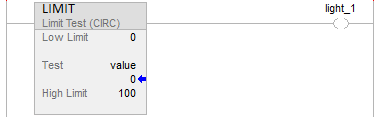 When Test value is equal to or greater than Low Limit, and Test value is less than or equal to High Limit, light_1 is set.