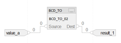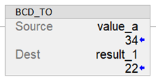 The BCD_TO instruction converts a BCD value (Source) to a decimal value and stores the result in the Destination.
