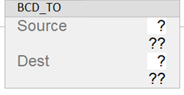 Rung-condition-in is true | Set Rung-condition-out to Rung-condition-in. Dest = decimal value of source with BCD value. |