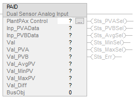 The Process Dual Sensor Analog Input (PAID) instruction monitors one analog Process Variable (PV) by using two analog input signals, from sources such as dual sensors, dual transmitters, and dual input channels. The PAID instruction monitors conditions of the channels and reports configured PV quality. The PAID instruction has functions for input selection, averaging, and failure detection. Additional functions, such as for filtering and alarming, are done by a downstream PAI block.