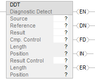 When enabled, the DDT instruction compares the bits in the Source array with the bits in the Reference array, records the bit number of each mismatch in the Result array, and changes the value of the Reference bit to match the value of the corresponding Source bit.