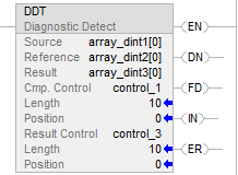 .DN | BOOL | The done bit is set when the DDT instruction compares the last bit in the Source and Reference arrays. |