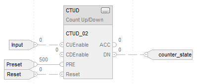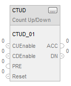 When disabled, the CTUD instruction retains its accumulated value. Set the Reset input parameter to reset the instruction.