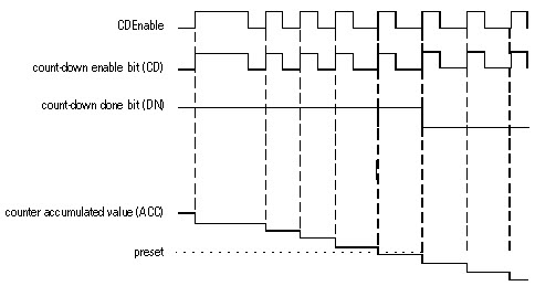 CDEnable | BOOL | Enable down count. When input toggles from clear to set, accumulator counts down by one.