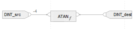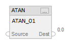 EnableIn is true | Dest = arc tangent value of the Source. If overflow occurs Clear EnableOut to false. else Set EnableOut to true. |