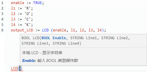 (* ST Equivalence: *) TESTOUTPUT := LCD(LCDENABLE, LINE1, LINE2, LINE3, LINE4) ;