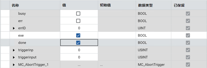 Busy | 输出 | BOOL | TRUE: 功能块未完成。 |