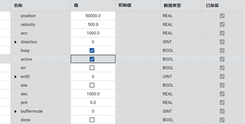 Active | 输出 | BOOL | 当为 TRUE 时,表示功能块可控制轴 |
