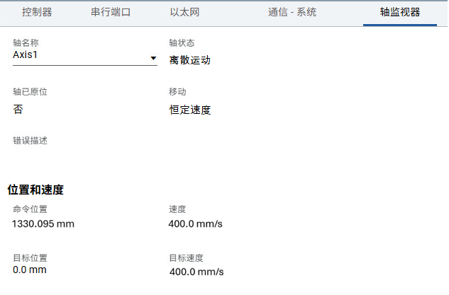 - 轴处于移动状态,将忽略 Velocity 输入的符号,轴继续按照当前方向移动并应用新动态参数。