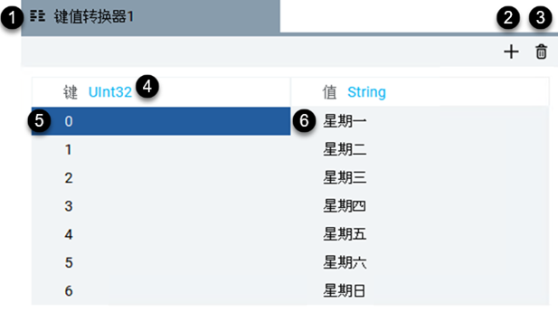 小贴士: 第一行中的值为默认值。如果源值与任何转换器键均不对应,则转换器返回默认值。