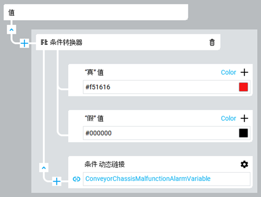 添加动态链接以创建复杂的动态链接,或者为所指示的属性输入一个值:- 颜色。选择或输入颜色的十六进制值,或者使用转换器创建一个指向十六进制颜色值的复杂动态链接。例如: