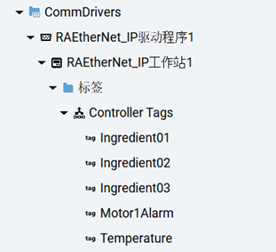 配置用于从 Logix 控制器导入示例标签(控制器变量)的通信驱动程序。