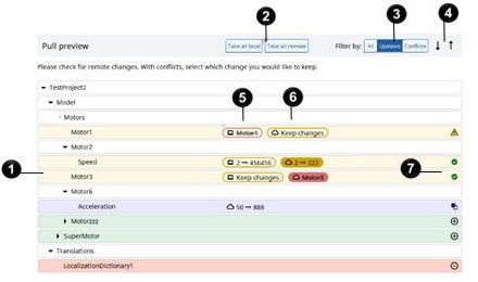 ![]() | 通过显示 全部 项目内容、仅显示对项目进行的更新 或仅显示项目中的冲突 来筛选预览中的更改。 |