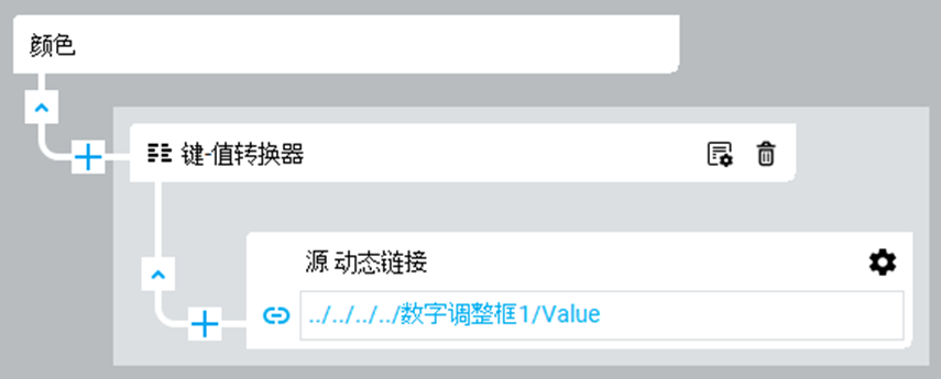 - 在属性中,使用键-值转换器在颜色和数字调整框1的值之间创建复杂动态链接: