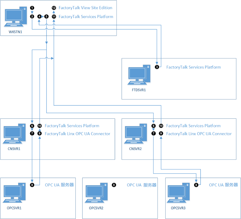 UA 服务器。以下分布式架构有两个 FactoryTalk Linx