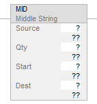 MID 指令从 Source 中复制一组字符并将结果放在 Destination 中。