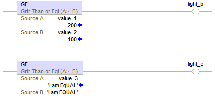 在 Logix Designer 版本 36 中,此指令的助记符从 GEQ 更改为 GE。