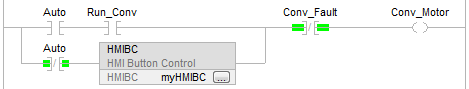 梯级输入条件为真 | 如果按下与指令实例标签关联的任何 HMI 设备按钮控件操作,则梯级输出条件设置为 true。否则,梯级输出条件设置为 false。 |