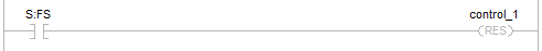 要将 .POS 重置为初始值 (.POS = 0),请使用 RES 指令来清除控制结构。下面的示例使用首次扫描位的状态来清零 .POS 值。