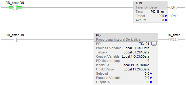 IF PID_timer.DN THEN PID(TIC101,Local:0:I.Ch0Data,Local:0:I.Ch1Data,