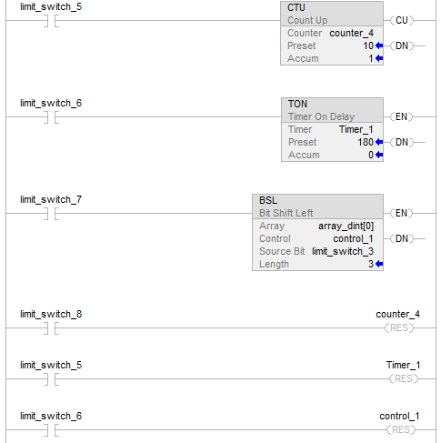 梯级输入条件为真 | 将梯级输出条件设置为梯级输入条件。 将指定结构复位。 |