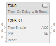 “复位” 输入参数置位时,该指令将复位。如果在 Reset 为真时 TimerEnable 置位,则当 Reset 恢复为假时,TONR 指令会重新开始计时。