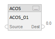 使能后,ACOS 指令可计算 Source 值的反余弦值,并将结果存储在 Destination 中(以弧度为单位)。