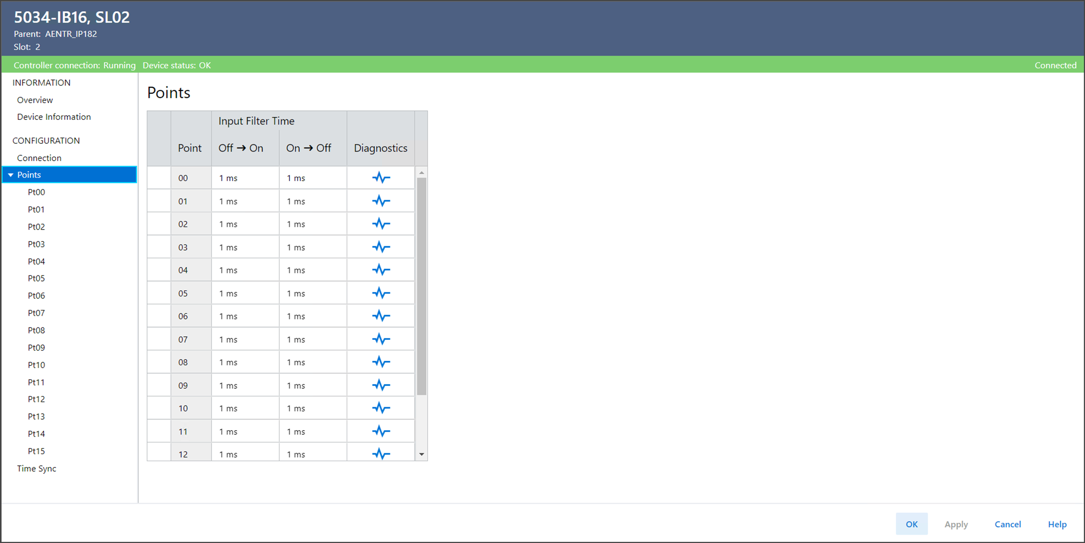 要查看 Ptxx diagnostics,在 Points 或 Ptxx 视图中选择 Diagnostics。