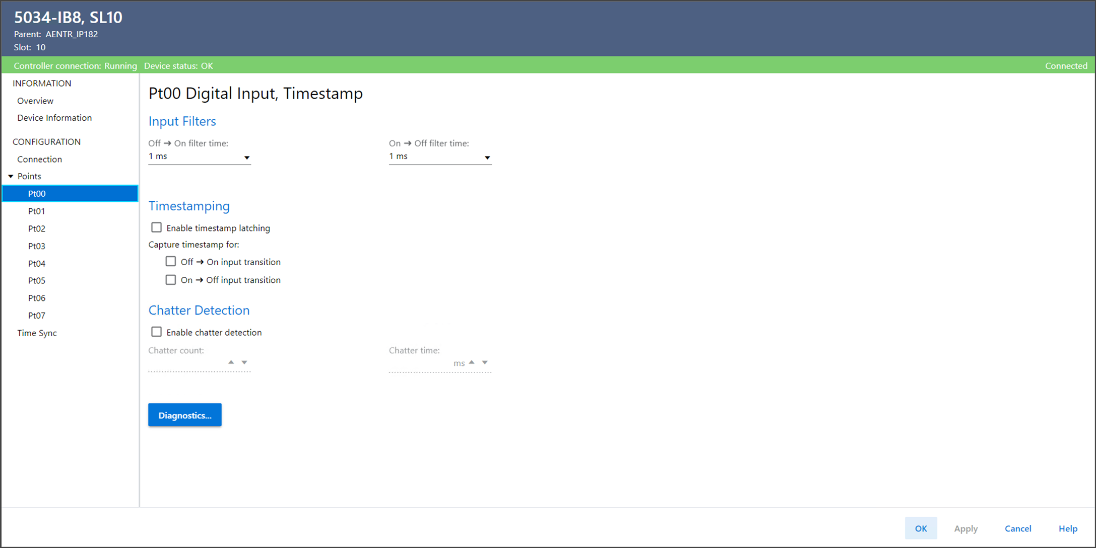 要查看 Ptxx diagnostics,在 Points 或 Ptxx 视图中选择 Diagnostics。