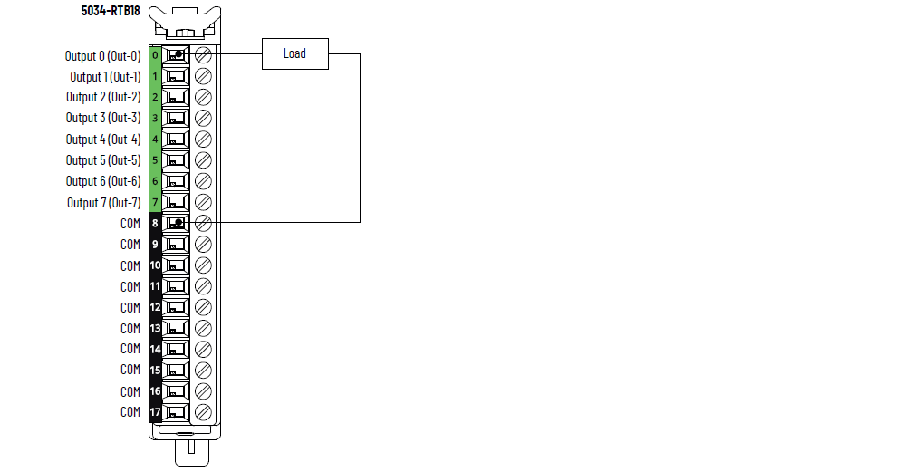 5034-OB8 和 5034-OB8XT 接线图 – COM 引脚独立负载回路接线