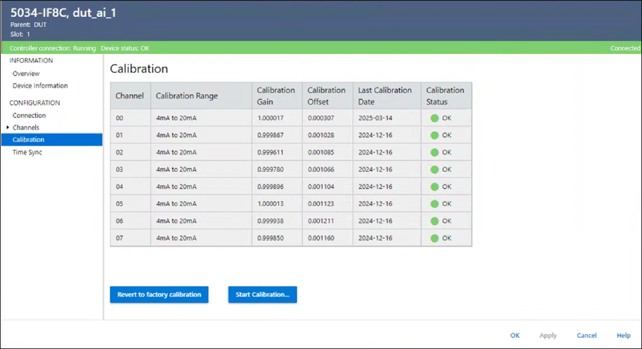 - 在 Module Properties 对话框的 Calibration 视图中,选择 Start Calibration。