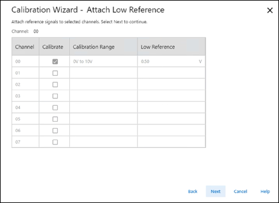 - 出现 Attach Low Reference 对话框后,请将校准器设为基准值下限并将其应用于相关通道。