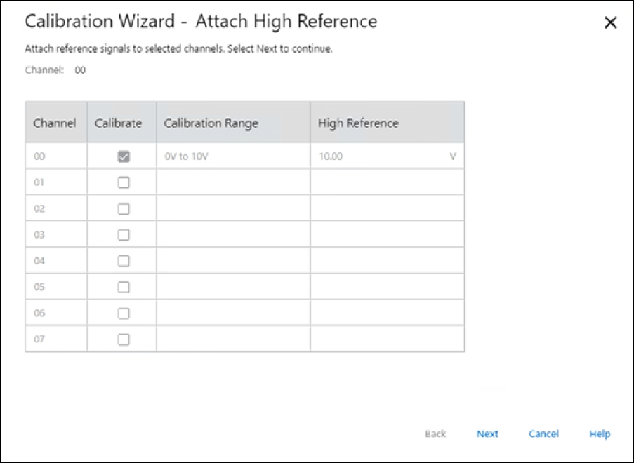 - 出现 Attach High Reference 对话框后,请将校准器设为基准值上限并将其应用于相关通道。