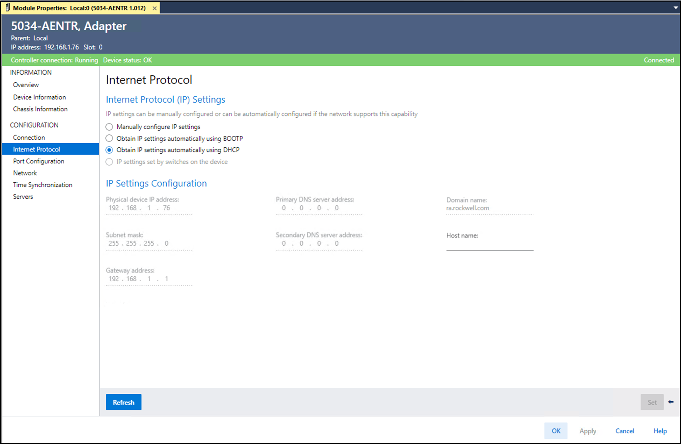 - 从 Module Properties 视图中,选择 Internet Protocol。