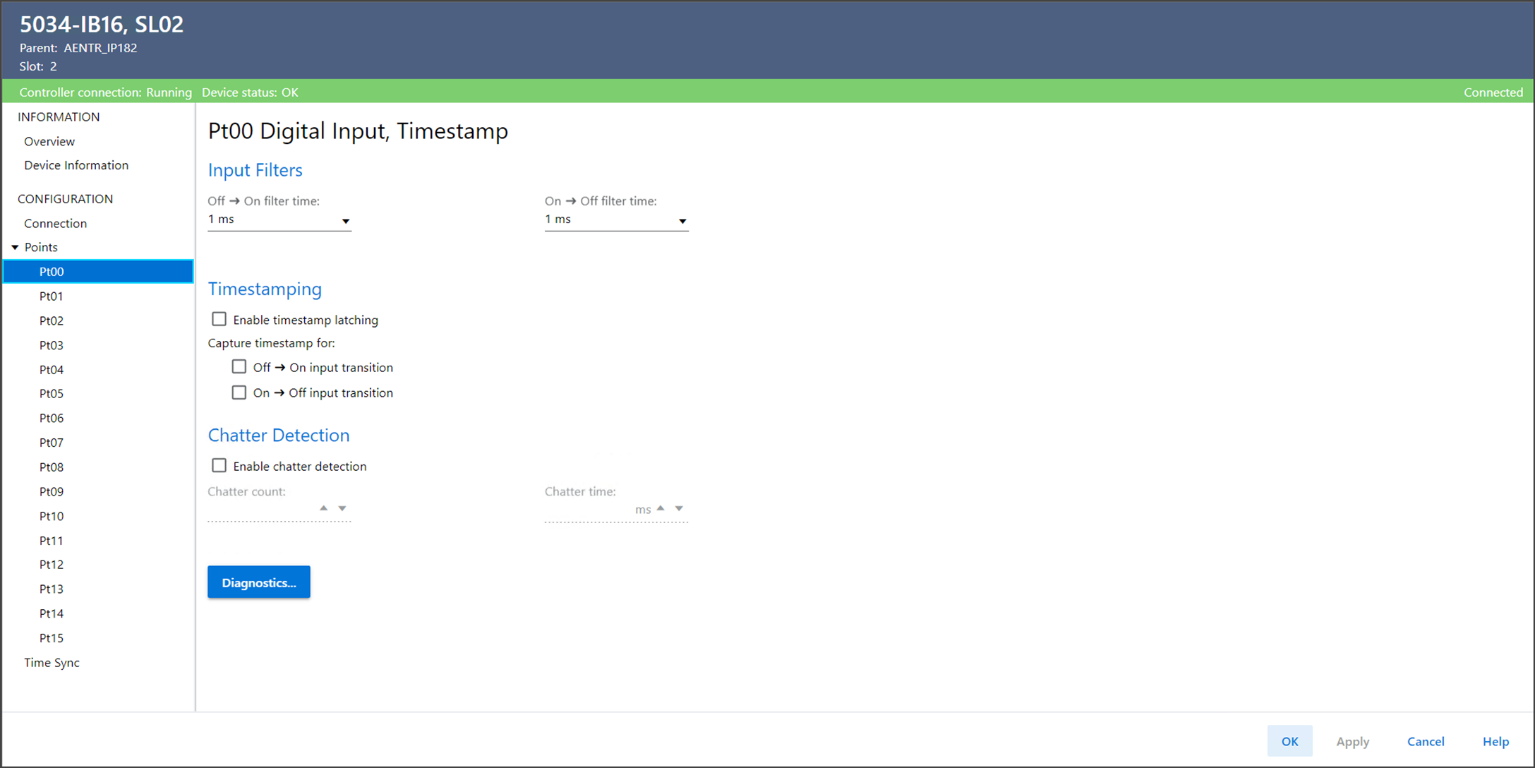 要查看 Ptxx diagnostics,在 Points 或 Ptxx 视图中选择 Diagnostics。