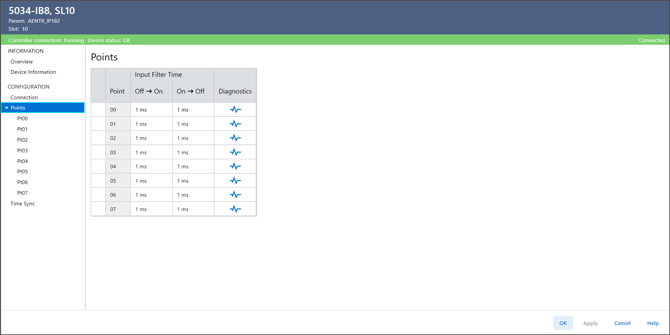要查看 Ptxx diagnostics,在 Points 或 Ptxx 视图中选择 Diagnostics。