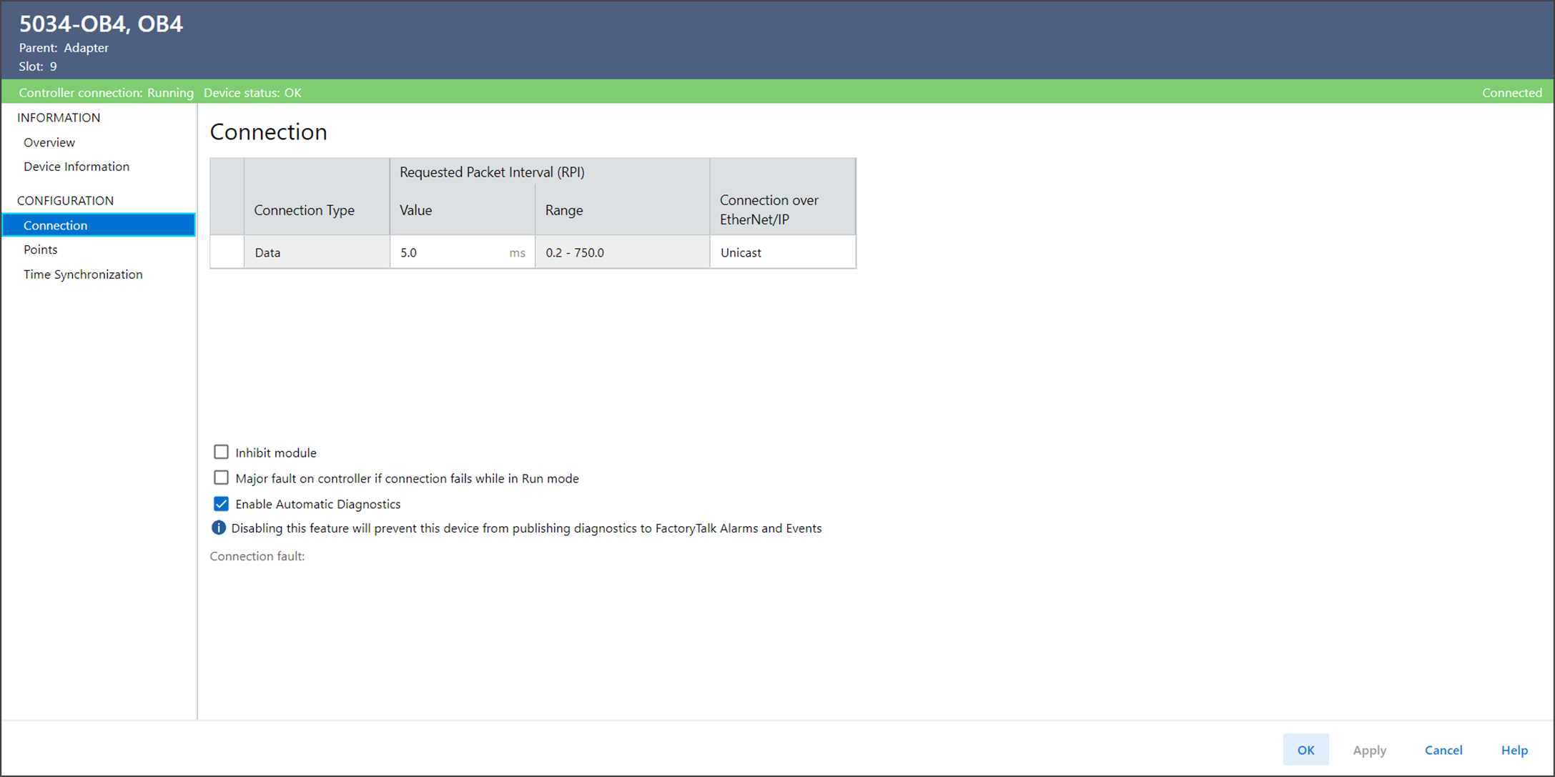 当控制器处于运行模式时,配置连接故障的故障响应。