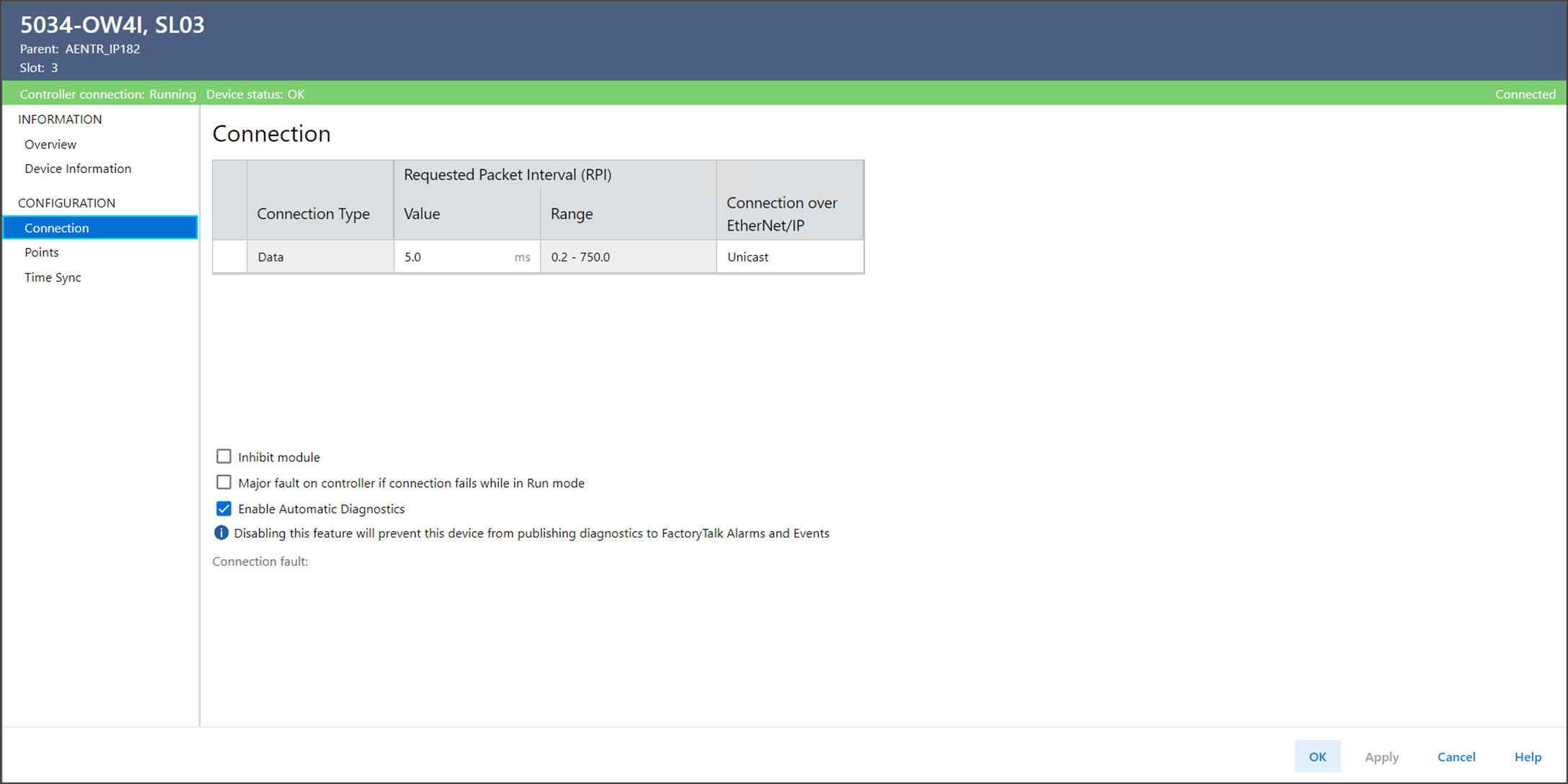 - 启用或禁用 Automatic Diagnostics。注意:如果未启用 Automatic Diagnostics,设备不会将诊断发布到 FactoryTalk Alarms and Events。