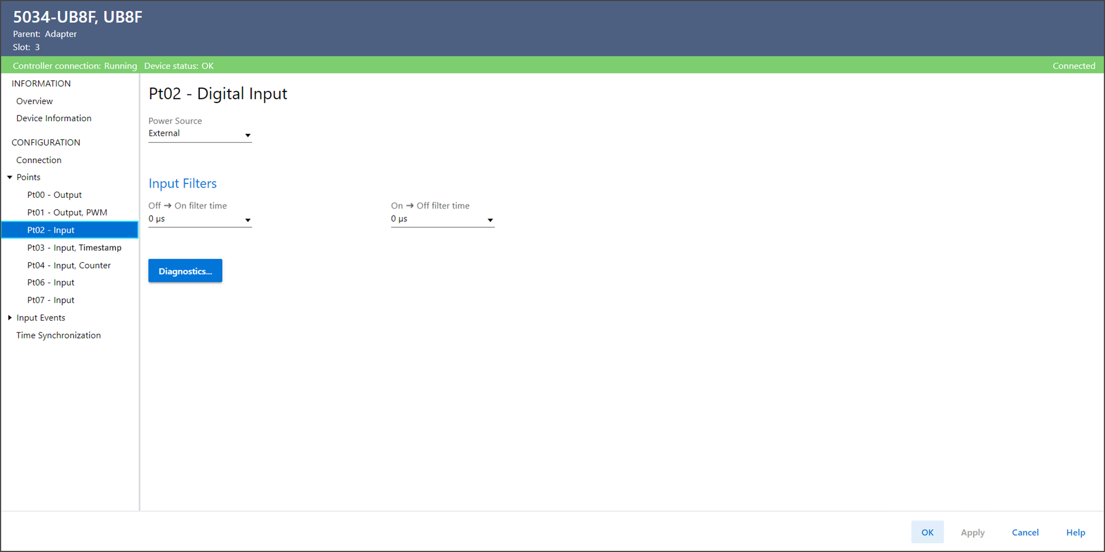 使用 Ptxx – Digital Input 查看或配置设备的点。