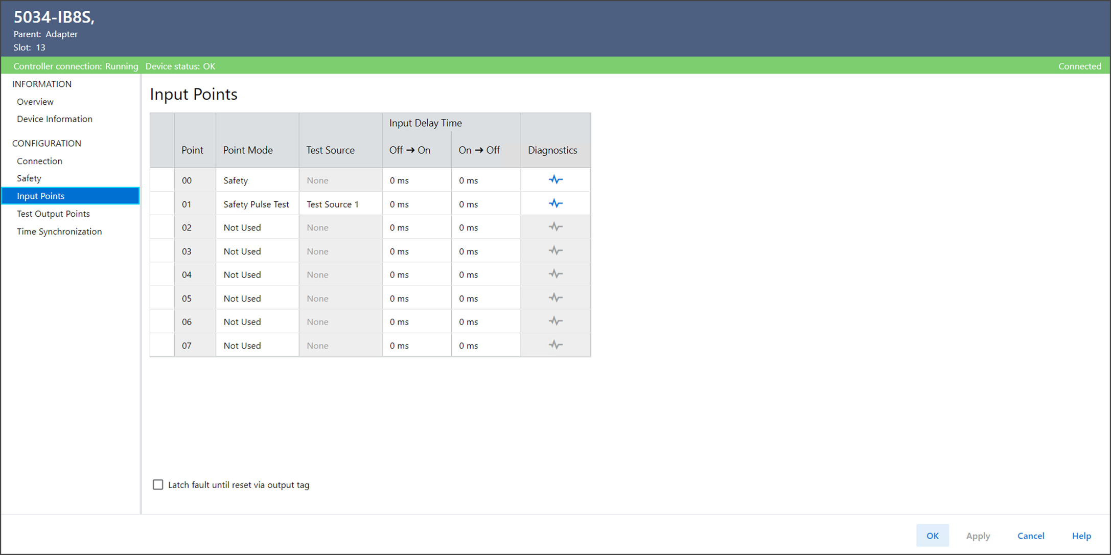 要查看 Ptxx 诊断,在 Input Points 视图中选择 Diagnostics。