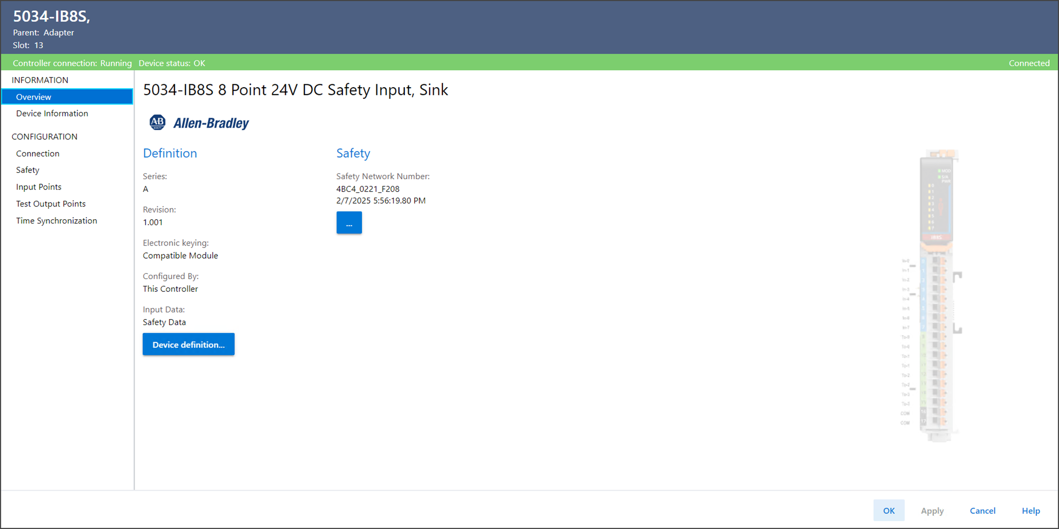 Studio 5000 Logix Designer 应用程序将一个 SNN 分配给第一个添加到远程系统中的安全模块。 应用将相同 SNN 分配给添加到此远程 I/O 系统的其他安全模块。
