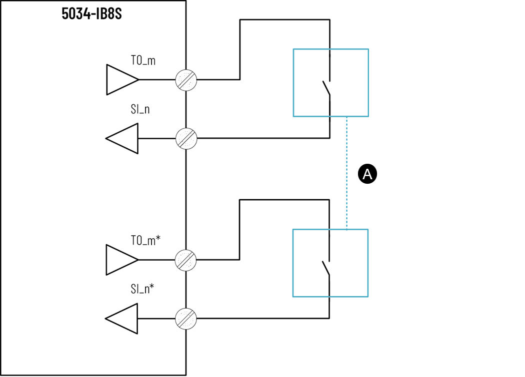 5034-IB8S 和 5034-IB8SXT – SIL 3、PLe、Cat. 4 安全模式下使用 2 个单通道