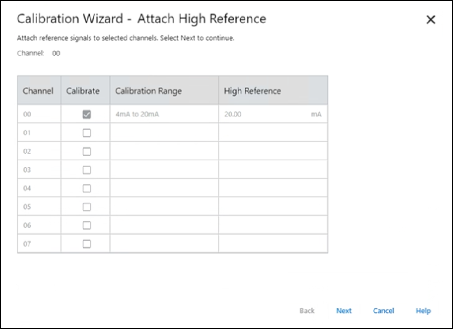- 出现 Attach High Reference 对话框后,请将校准器设为基准值上限并将其应用于相关通道。