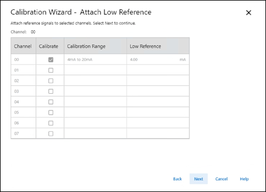 - 出现 Attach Low Reference 对话框后,请将校准器设为基准值下限并将其应用于相关通道。